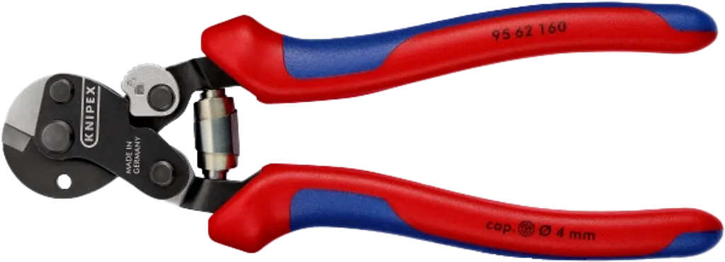 KNIPEX 95 62-serien är kompakta och robusta wiresaxar för professionell kapning av koppar- och aluminiumkabel, vajer och rundjärn – perfekta för installations- och servicearbeten.