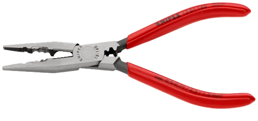 Tången kan gripa, böja, klippa och avisolera tråd samt crimpning av ändhylsor. De extra induktionshärdade precisionsskären klarar både medelhård och hård tråd, medan integrerade avisoleringshål gör kabelbearbetningen snabb och effektiv.