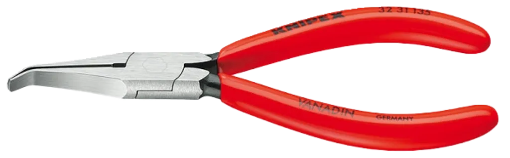 KNIPEX Komponenttång 135 mm är en kompakt och exakt justeringstång med flata, spetsiga käftar – idealisk för att gripa tunn tråd, små komponenter samt böja kontakt- och reläfjädrar vid elektronik- och finmekaniska arbeten.