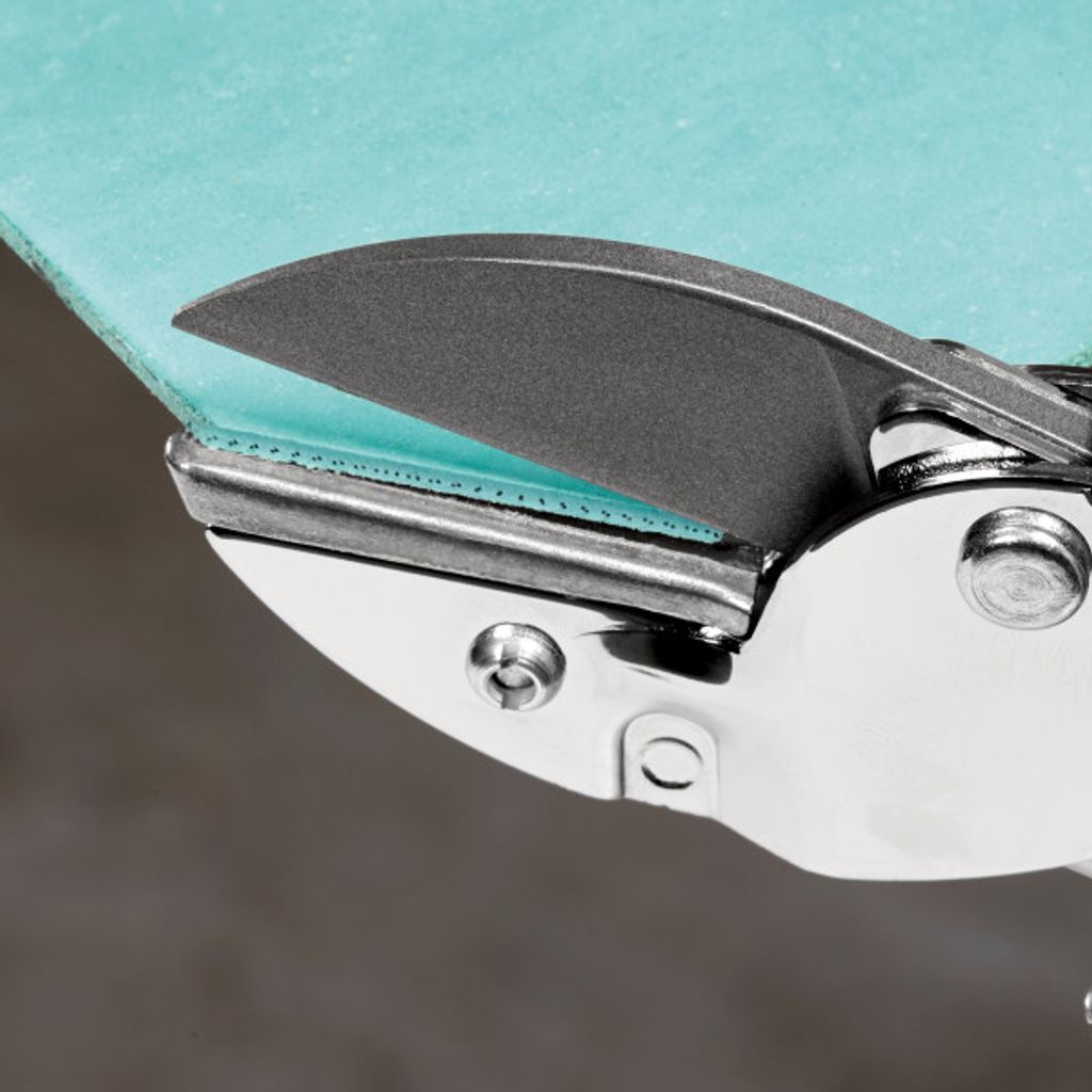 Tack vare det fasta mothållet och en praktisk öppningsfjäder klipper verktyget både breda och tjocka material med precision. Konstruktionen med spärrhake och utbytbart blad gör saxen enkel att använda, hållbar och pålitlig för professionellt bruk.