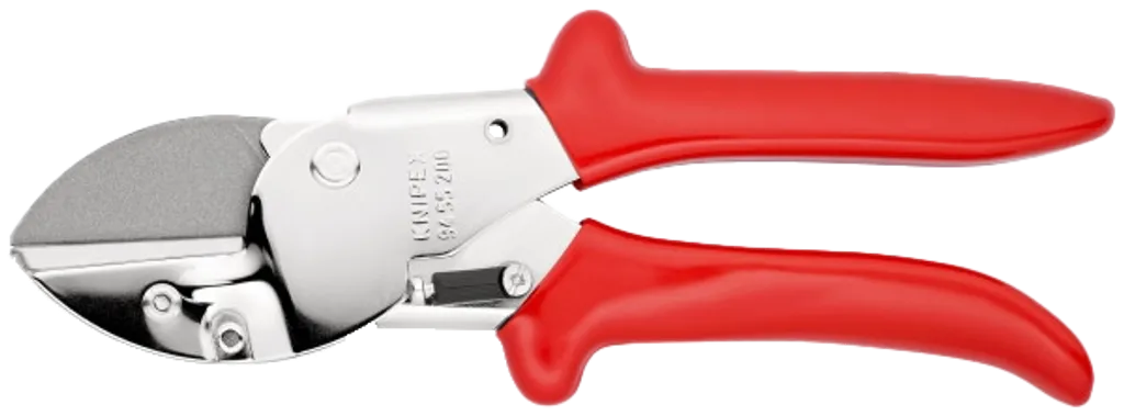 KNIPEX 94 55 200 är en robust mothållssax som ger linjära snitt utan klämning – idealisk för exakt kapning av mjuka material som gummi, PVC, trä och slang.