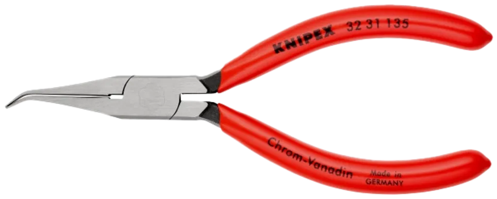 KNIPEX Näbbtång böjd 135 mm kombinerar precision, kompakt design och skonsam hantering – ett oumbärligt verktyg för elektronik, finmekanik och fjäderarbete.