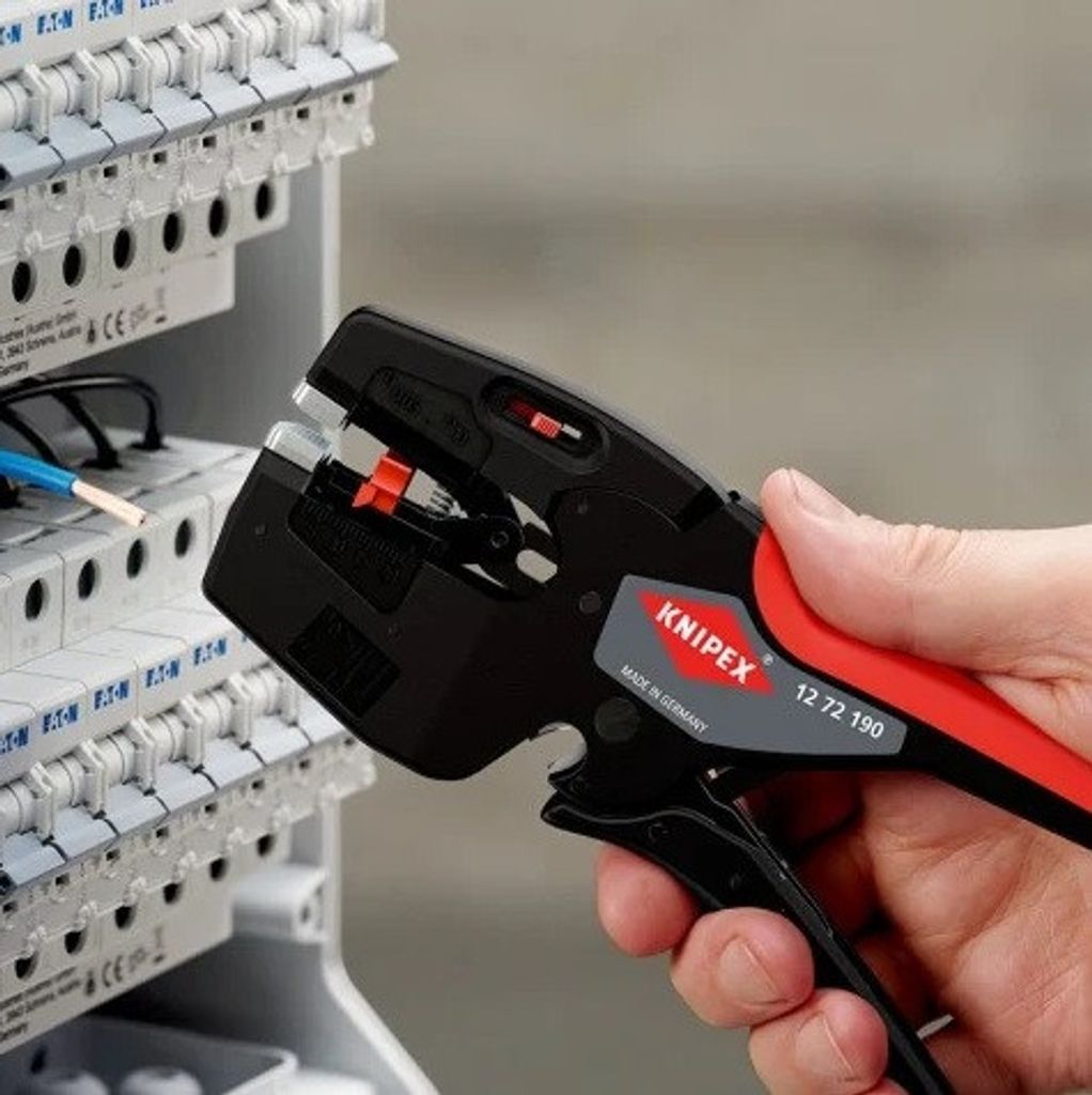 KNIPEX NexStrip, 3-i-1 avisoleringsverktyg, kabelverktyg KNIPEX, avisolering och pressning kablar, professionellt elverktyg, multifunktionellt kabelverktyg