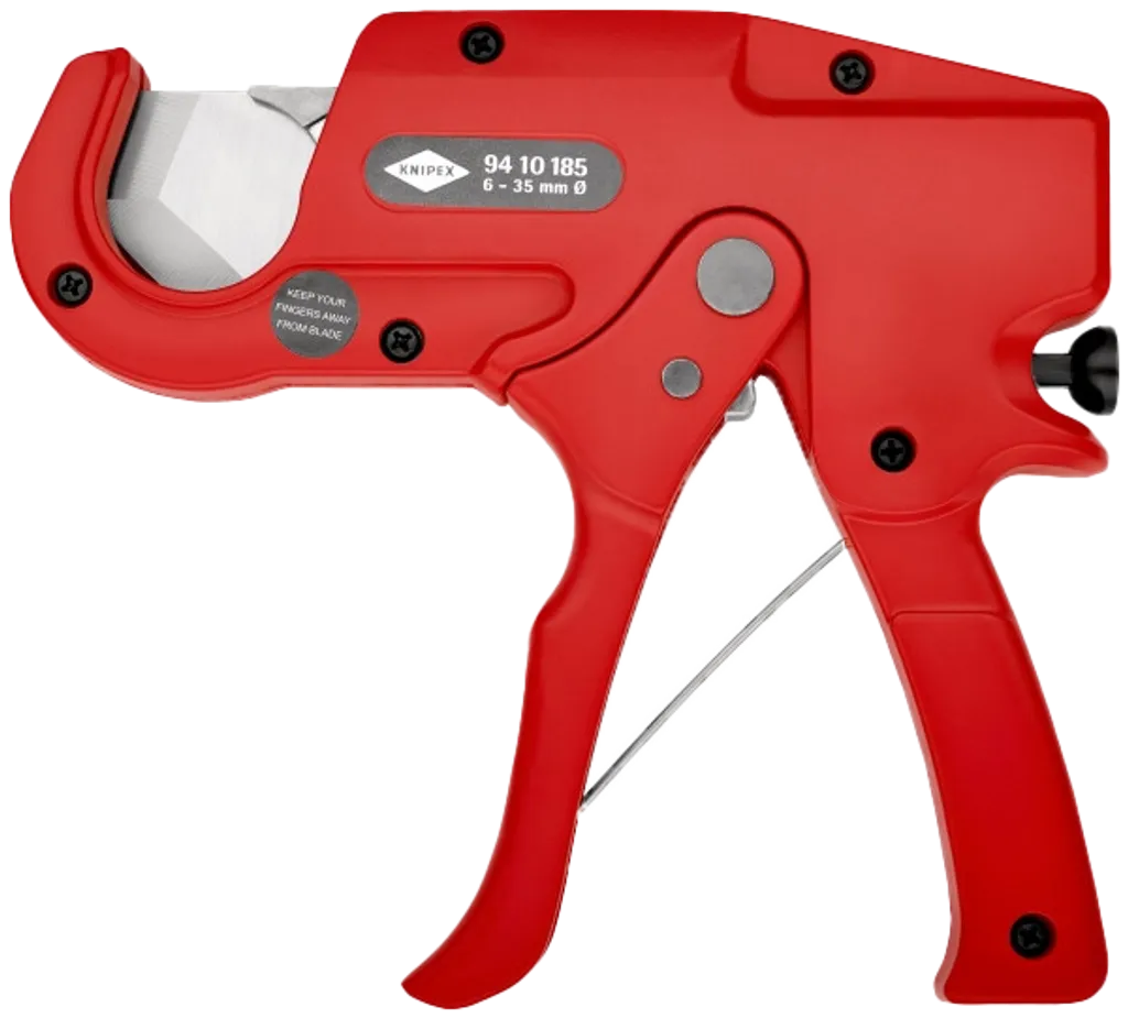 KNIPEX Plaströrsklippare 94 10 185 är en robust och ergonomisk rörskärare för snabb, gradfri kapning av plaströr upp till 35 mm i diameter.