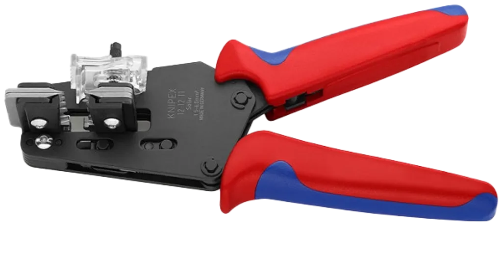 Med formlåsande teknik, ett extra knivpar som håller isoleringen på plats och utbytbara formknivar ger verktyget maximal precision och repeterbarhet. Det inställbara längdstoppet gör tången idealisk för seriearbete och solarkablar.