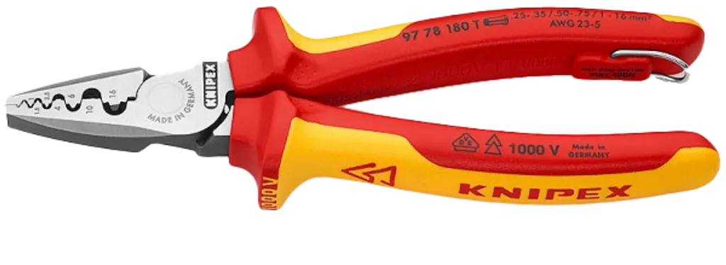 KNIPEX presstång 1000V, ändhylsor VDE, crimpverktyg elinstallation, presstång 0,25–16 mm², KNIPEX verktyg elektriker