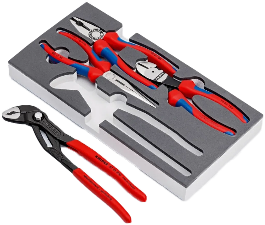 KNIPEX Set tänger i skumplastinlägg är den smarta lösningen för dig som vill ha snabb åtkomst, översikt och säker förvaring av dina verktyg.