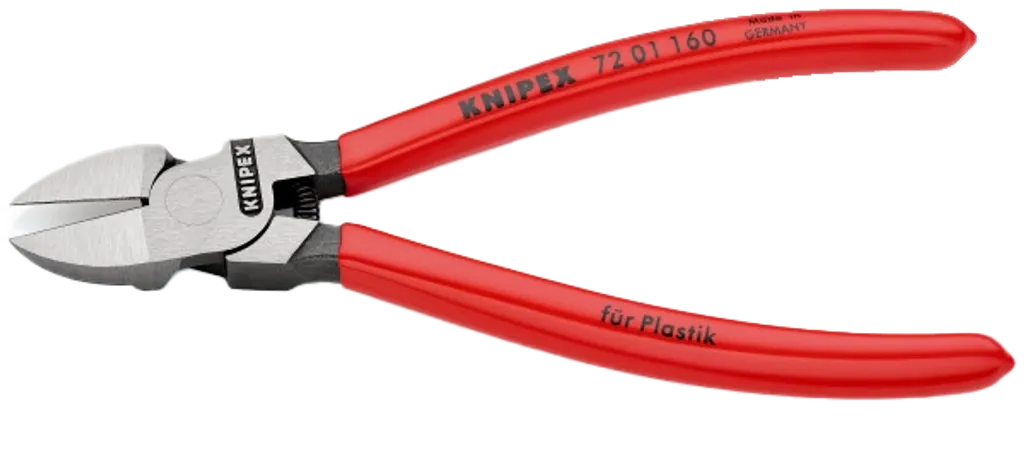 KNIPEX 7201, sidavbitare plast, precisionsavbitare bly, knipex 160 mm plasttång, avbitare formsprutning, planslipad avbitare, finmekanikverktyg, trendab