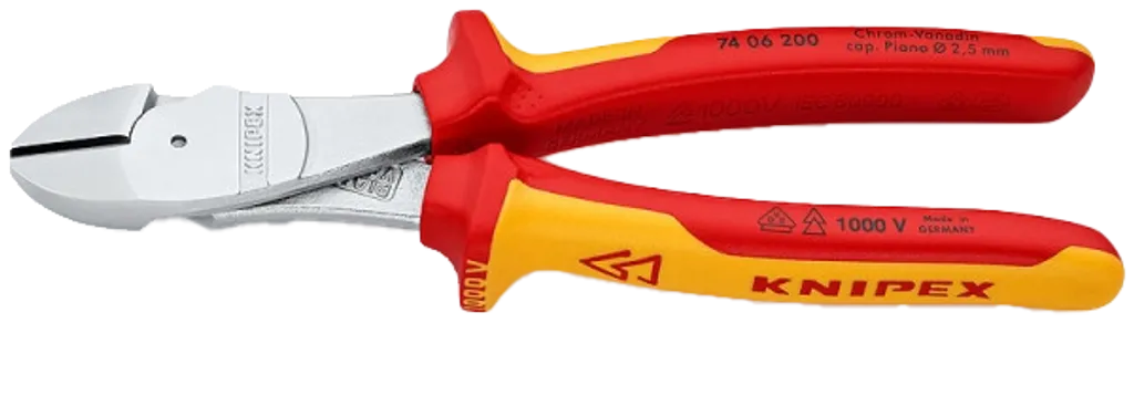 KNIPEX 7406200 är en robust och kraftfull sidavbitare med VDE-isolering för elarbeten upp till 1000 V.
