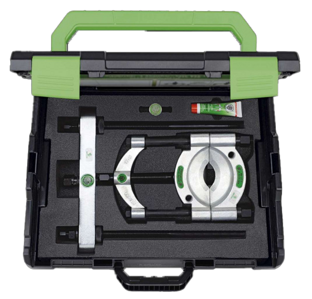 KUKKO 17-B är det perfekta valet för professionella mekaniker och industriverkstäder som behöver ett kraftfullt, säkert och komplett set för demontering av lager och innerringar.