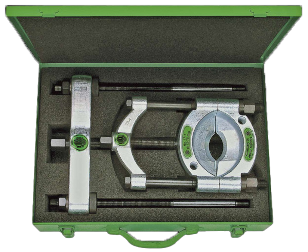 KUKKO 17-C är ett kraftfullt och professionellt lagerseparatorset med snabbspindel och mothåll – särskilt utvecklat för demontering av stora kullager, rullager och innerringar i trånga utrymmen.