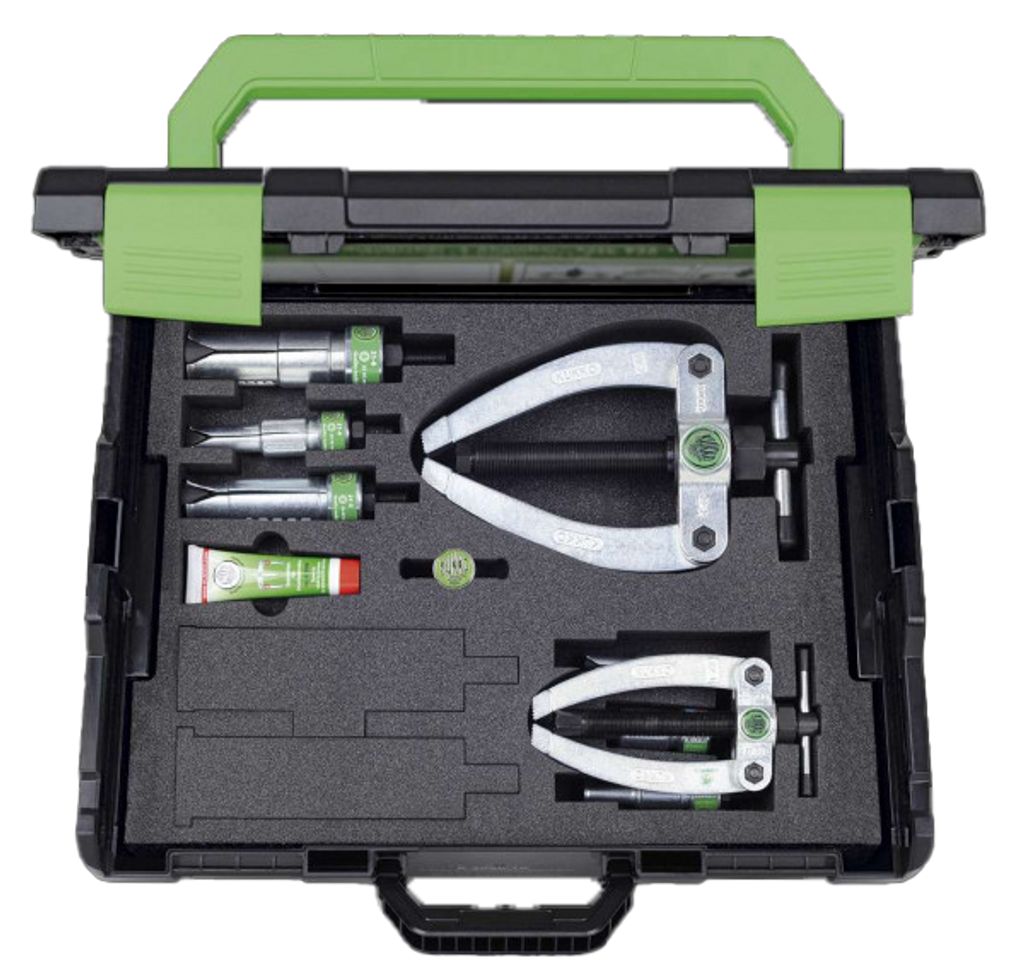 Setet innehåller åtta olika avdragare och ett robust mothåll som tillsammans ger hög precision, säker hantering och skonsam demontering även i trånga utrymmen. Tack vare självlåsande konstruktion och snabbkoppling till mothåll är arbetet både effektivt och säkert. Levereras i en organiserad metallväska med skuminlägg för enkel sortering och lång livslängd.