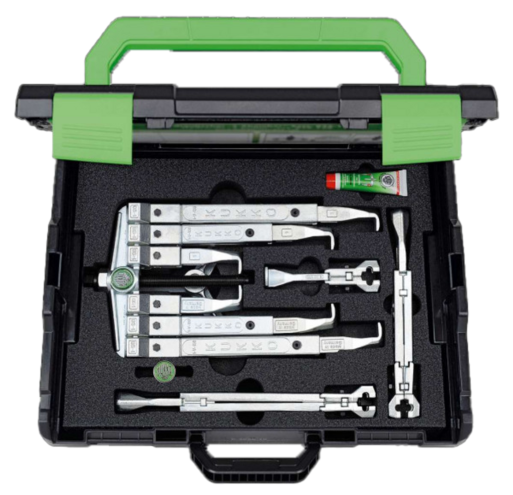 KUKKO K-2030-10 är ett komplett avdragarset med universella 2- och 3-armade avdragare – utvecklat för professionell demontering av lager, drev och remskivor.
