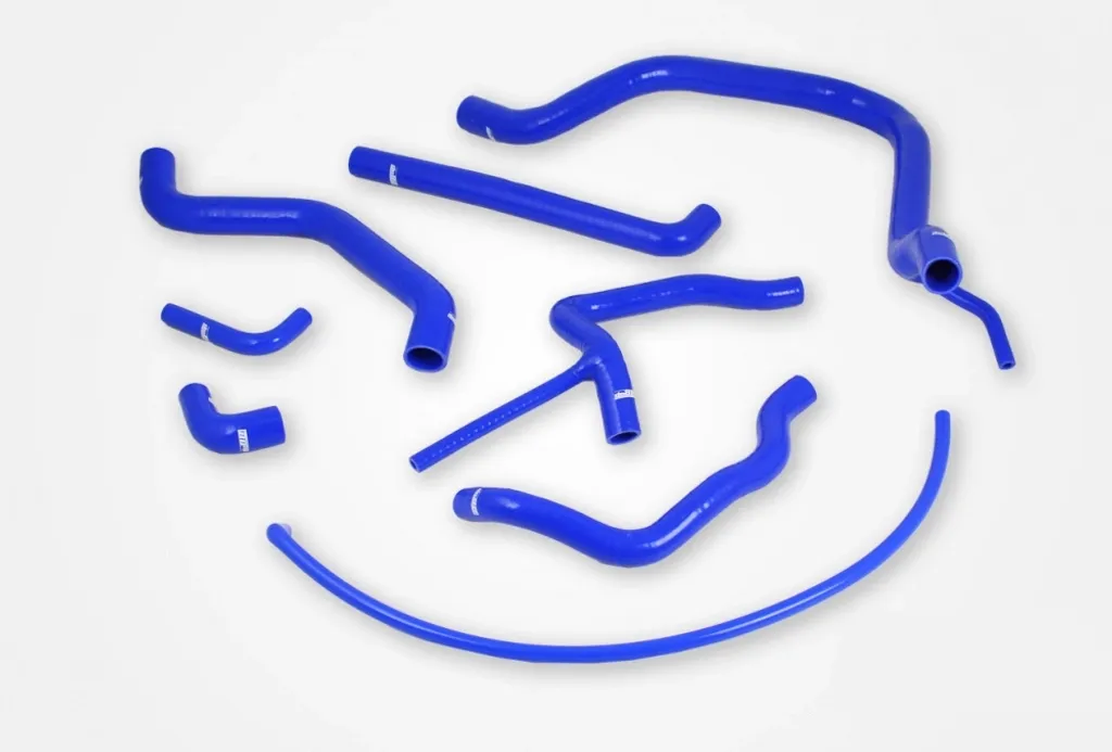 Slangarna är konstruerade för att tåla höga tryck och temperaturer under lång tid. Med tre till fem lager armering, beroende på innerdiameter, bibehålls form och funktion även vid hård belastning. Originalslangar i gummi tenderar att spricka och torka med åldern – detta silikonslangkit eliminerar problemet och ger dessutom en visuell uppgradering. Färgval påverkar inte prestandan, men Blå finish ger ett sportigt och modernt intryck. För bästa montering rekommenderas matchande slangklämmor, tillgängliga under fliken Tillbehör.