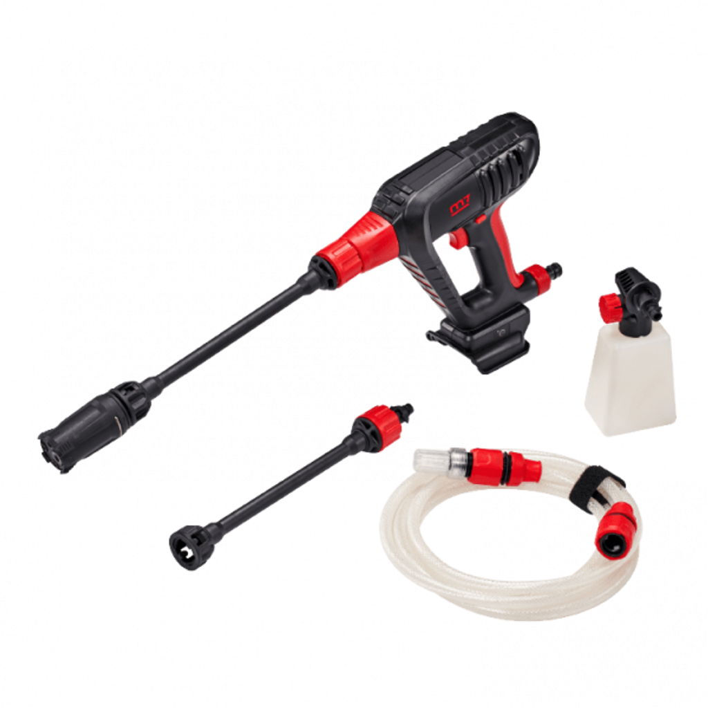 M7 Högtryckstvätt 18V DPW-101 är en lätt och mobil lösning för snabb rengöring hemma, i verkstaden eller på resan. Med sitt 4-i-1-munstycke, 4 meters insugsslang och möjlighet att använda vatten från en hink, sjö eller kärl får du maximal flexibilitet. Den sladdlösa designen gör det enkelt att tvätta bilar, cyklar, båtar, altaner och mycket mer – helt utan behov av fasta anslutningar.