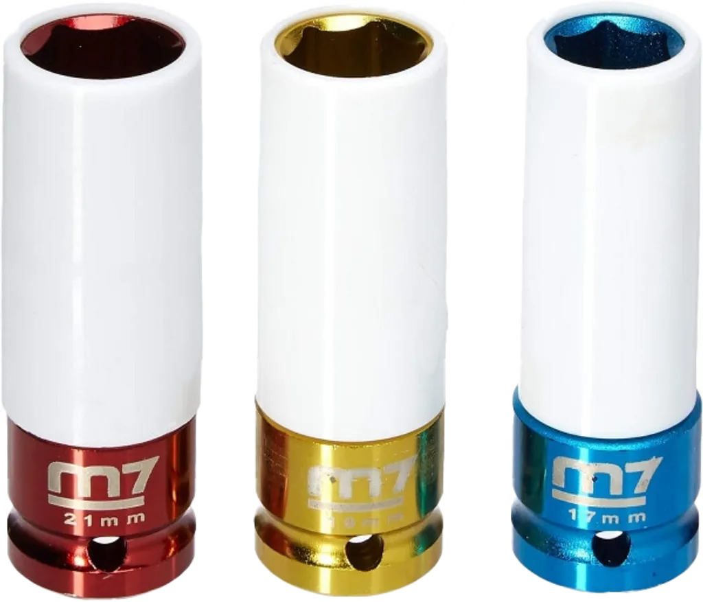 M7 MA4030 är ett 3-delars krafthylsset med skyddshylsor, särskilt utvecklat för arbete med aluminiumfälgar.