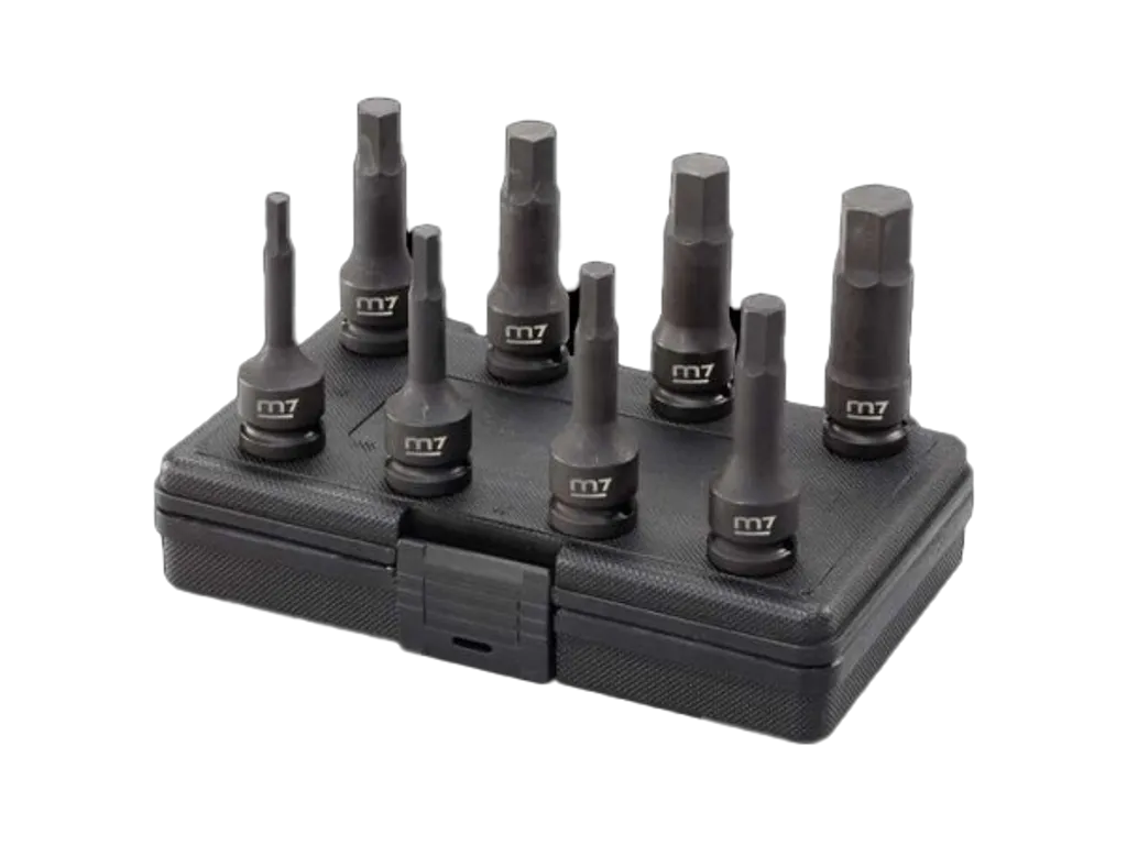 M7 MB44008M är ett 8-delars krafthylsset med insexhylsor i 1/2”-fäste, utvecklat för tungt arbete inom fordonsreparation, industri och bygg.