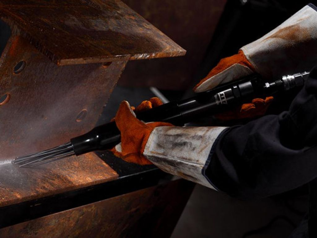 Kraftfull tryckluftsdriven nålskrapa med 19 härdade nålar – utvecklad för tung rengöring av hårt smutsade ytor.
