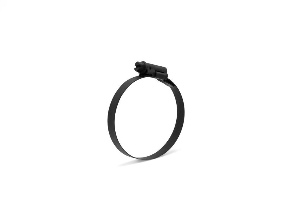 Det kallvalsade, präglade 12 mm bandet har slät undersida och uppvikta kanter som skyddar slangen mot skador vid åtdragning. Den höghållfasta skruven och det kompakta huset ger en stark, tät och pålitlig infästning. Den svarta ytbehandlingen förbättrar motståndet mot korrosion, kemisk påverkan och mekaniskt slitage, vilket gör klämman lämplig även i krävande miljöer. Klämman uppfyller DIN 3017-standarden samt EU-direktiv 2002/95/EC. För optimal funktion bör klämman dras åt till högst 75 % av maximalt värde och dimensionen väljas efter slangens ytterdiameter.