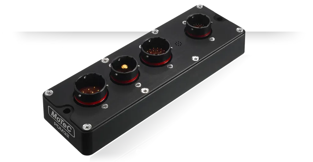 MoTeC:s 32-output PDM är en avancerad lösning för strömfördelning i högpresterande fordon och ersätter traditionella reläer, säkringar och överströmsbrytare.