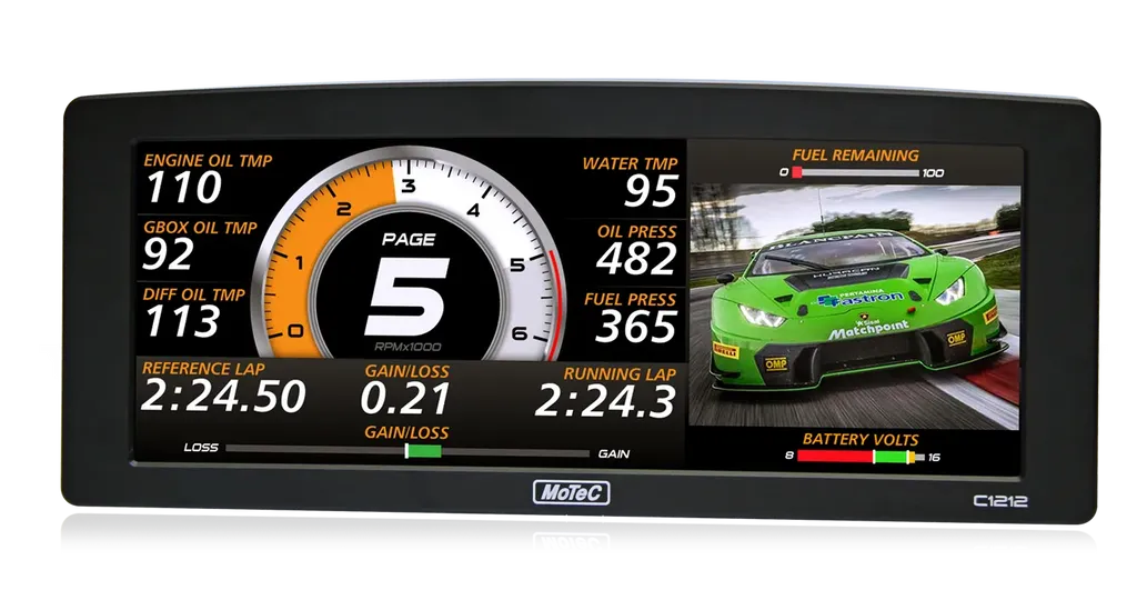 MoTeC C1212 erbjuder en komplett lösning för display, styrning och datalogging – en oumbärlig enhet för professionella användare som kräver precision och tillförlitlighet.