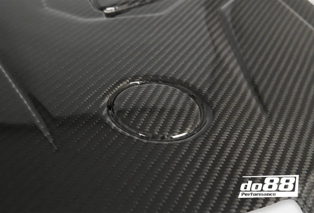 Denna kolfiberkåpa är speciellt framtagen för att lyfta helhetsintrycket under motorhuven. Tillverkad i 2x2 vävd prepreg-kolfiber och belagd med värmebeständig glansig klarlack som även har UV-skydd för att motverka gulning. Resultatet är ett aggressivt och modernt utseende som harmoniserar med bilens sportiga karaktär.