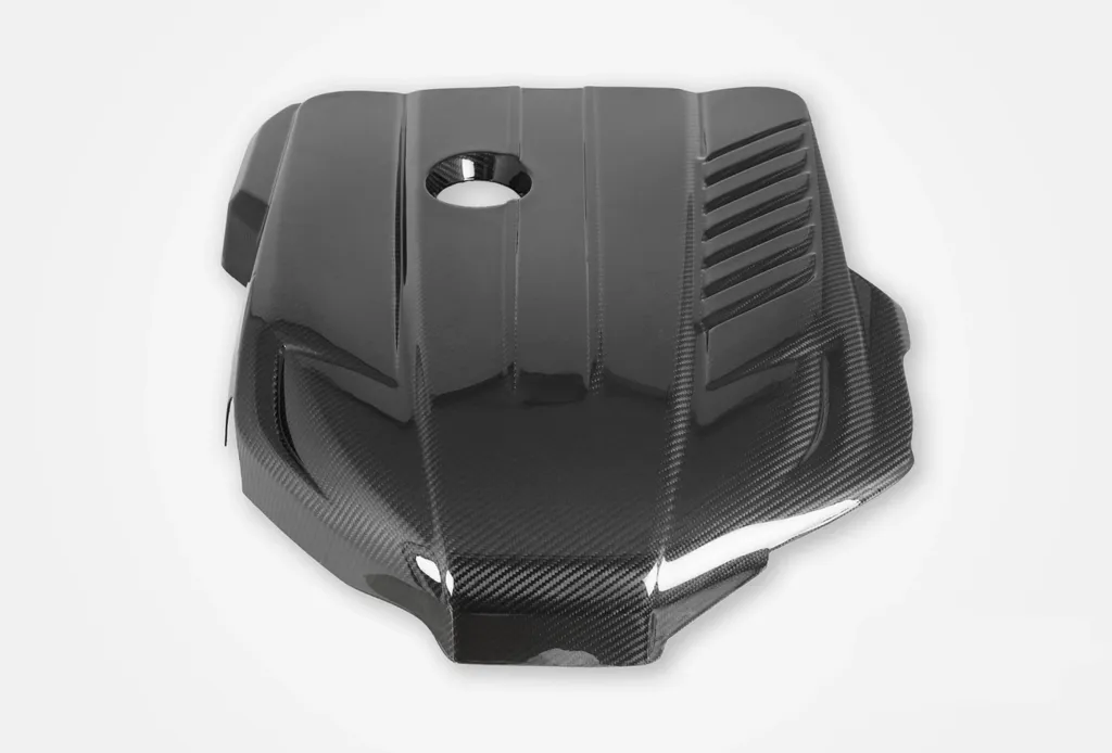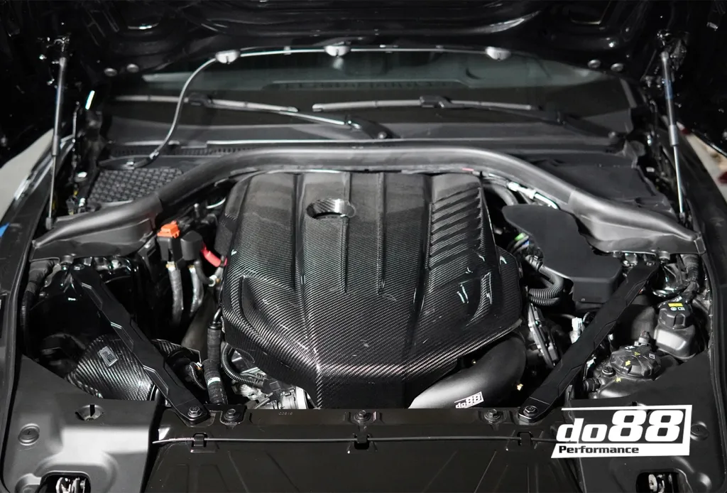 Montering är enkel – kåpan använder originalets installationspunkter och gummifästen i OEM-stil. Inga modifieringar krävs, vilket gör det till en direkt ersättning av originalkåpan. Resultatet blir ett rent, exklusivt och sportigt motorrum som matchar bilens design.