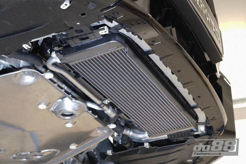 Originaloljekylaren på BMW G8X S58-motorer är placerad horisontellt under det främre kylarpaketet. Den är utrustad med ett känsligt Tube & Fin-cellpaket som lätt kan skadas av stenskott eller vägbeläggning, vilket i värsta fall leder till oljeläckage och motorskador. Denna uppgraderade oljekylare är konstruerad med robust Bar & Plate-design samt TIG-svetsade aluminiumtankar som både ökar hållbarheten och förbättrar kylförmågan.