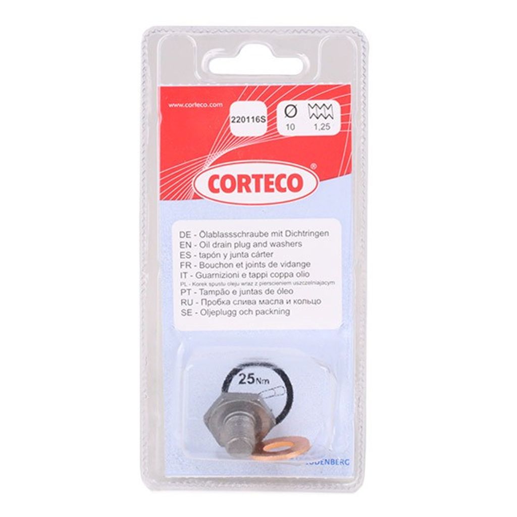 En högkvalitativ oljeplugg med tillhörande packning, specifikt utformad för att säkerställa en tät och säker förslutning av oljetråget vid service på ett brett urval av europeiska dieselmotorer.