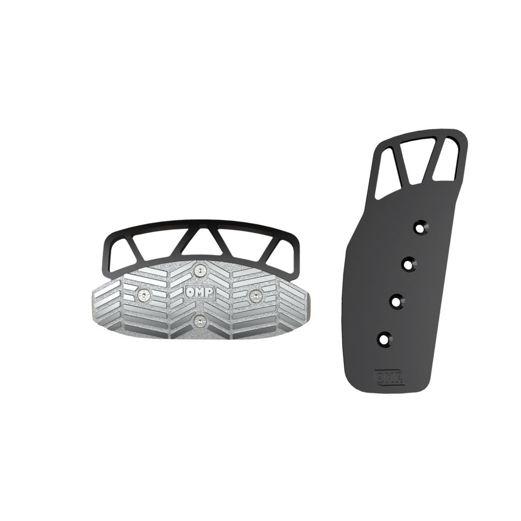 OMP:s 2-pedalsats i anodiserad aluminium är utvecklad för förare som kräver både säkerhet, grepp och en professionell racingkänsla – perfekt för bilar med automatlåda där broms- och gasrespons är avgörande.