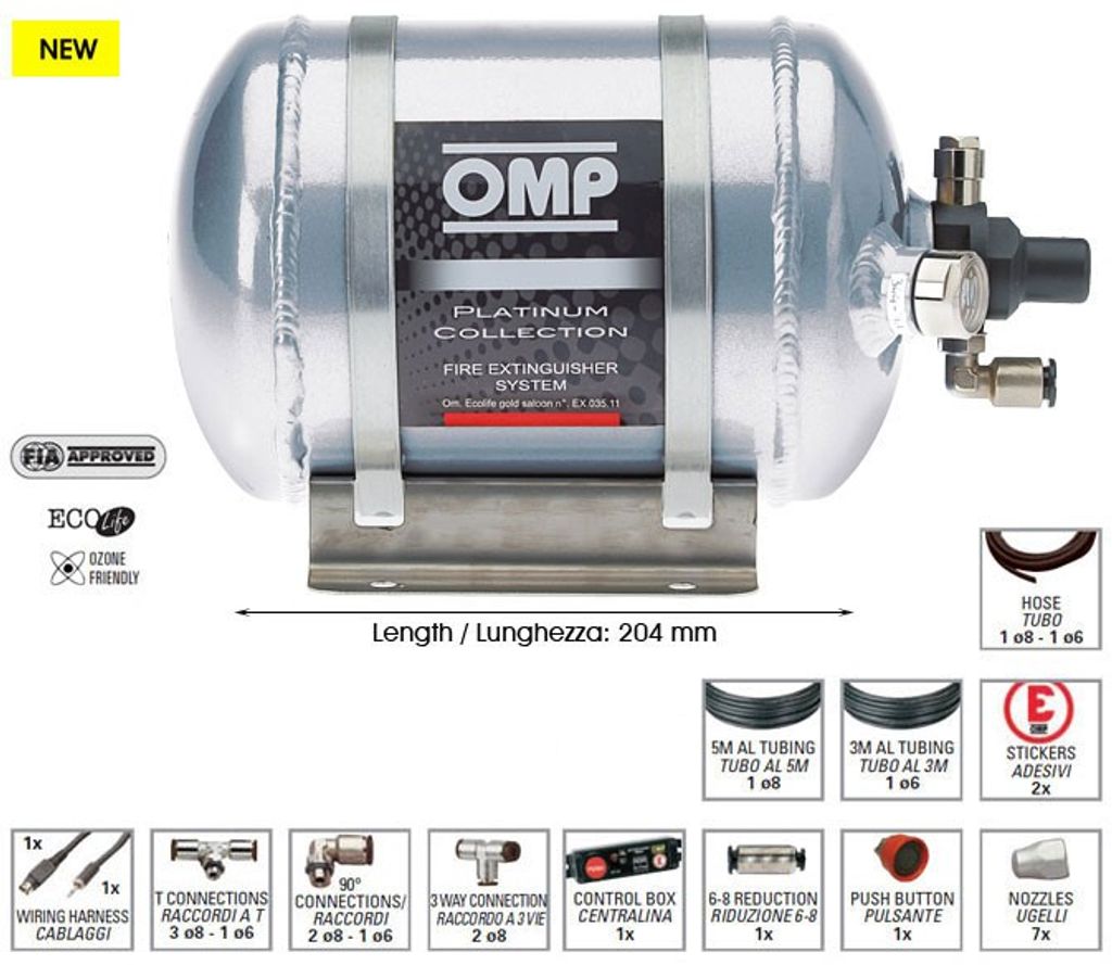 Relaterade sökord: omp cesal 3 platinum, fia 2000 brandsläckningssystem, elektriskt sprinklersystem racing, lättvikts brandskydd tävlingsbil