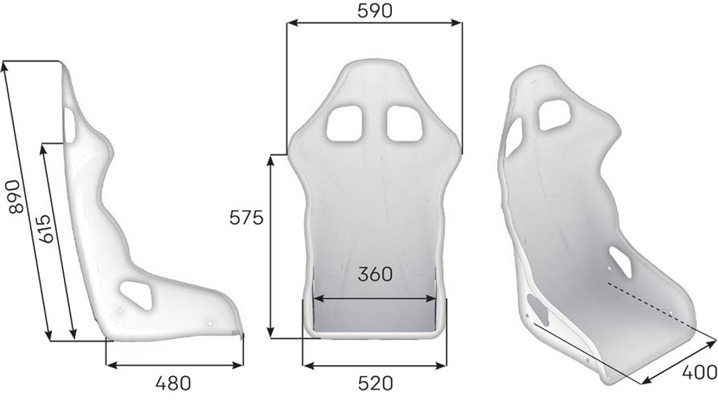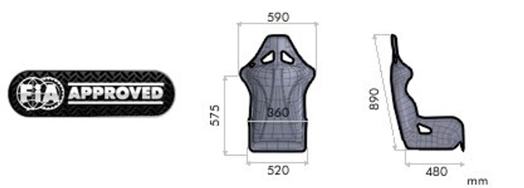 FIA-homologerad racingstol i gel-coated glasfiber med medelhöga sidor, avtagbara kuddar och stöd för HANS/Hybrid-system.