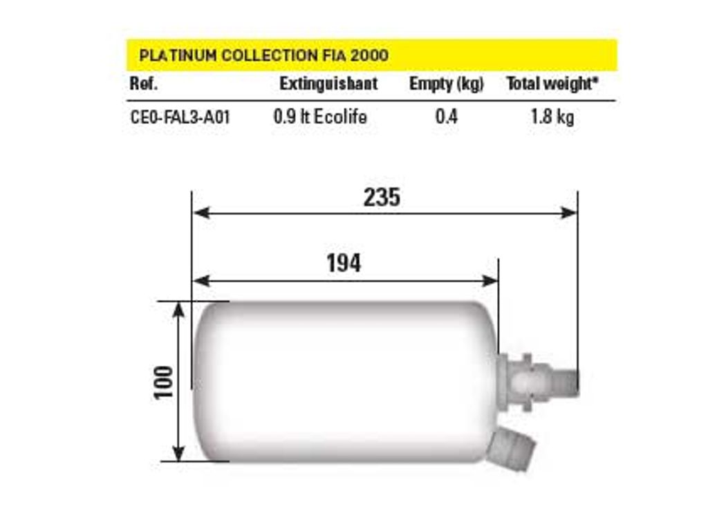 - Flaska: Aluminium, 0,9 L med Ecolife-släckmedel