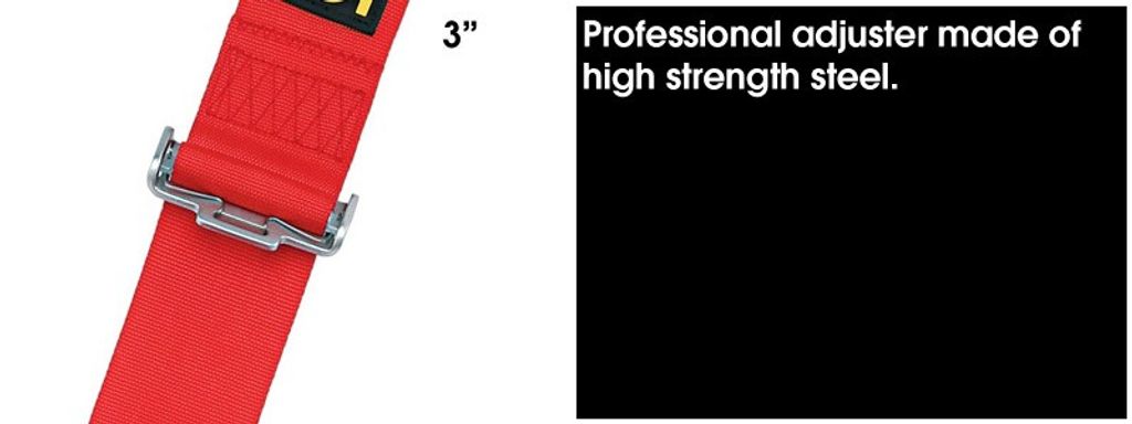 Ett FIA 8853-2016-godkänt 6-punktsbälte med 3" axel- och höftremmar, pull up-justering och slitstark konstruktion – utvecklat i polyester med ståljusterare och aluminium/stålspänne för maximal säkerhet och hållbarhet i tävlingsmiljö.