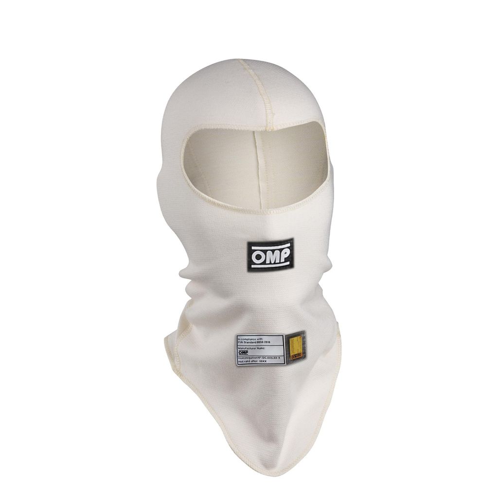 racingbalaklava FIA 8856-2018, OMP balaclava vit, brandsäker racinghuva, balaklava för rally, FIA godkänd balaclava motorsport, OMP First racingbalaklava, brandskydd racingutrustning