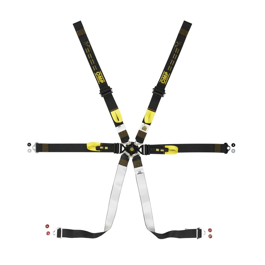 Lätt och slitstarkt FIA-godkänt racingbälte från OMP med snabbjustering, reflexdetaljer och optimal passform.