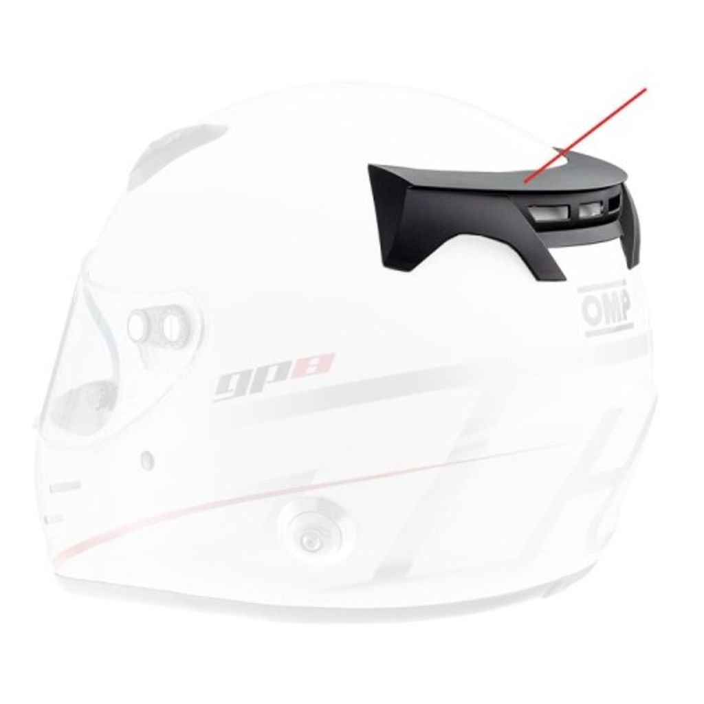 OMP GP8 EVO spoiler, bakspoiler hjälm OMP, racinghjälm aerodynamik, OMP hjälmtillbehör, spoiler för GP8 EVO, OMP rear spoiler svart, motorsport hjälm spoiler