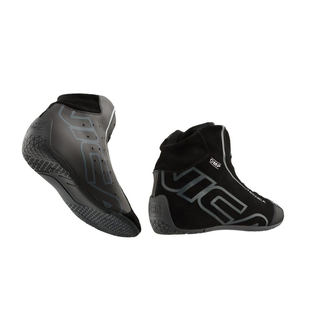 OMP TECNICA är professionella racing- och rallyskor som kombinerar säkerhet, prestanda och hållbarhet. Utsidan i mjuk mocka ger en sportig look medan insidan i slitstarkt läder ökar livslängden. Den ultralätta sulan säkerställer direktkontakt med pedalerna för exakt respons, och den flexibla bakbälgen gör skorna lätta att ta på och bekväma även under längre körpass. Homologerade enligt FIA 8856-2018 och godkända för internationell motorsport.