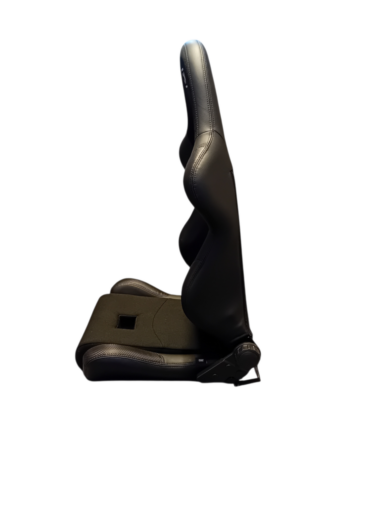 Robust racingstol med bältesgenomföringar, fällbar design och avtorkbar yta – byggd för komfort, säkerhet och hållbarhet i off-roadmiljöer.