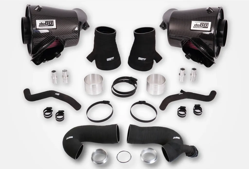 När Porsche lanserade 992-serien förändrades konstruktionen av intercooler- och insugssystemet radikalt jämfört med tidigare modeller (996, 997, 991). Istället för en gemensam luftburk för båda turboaggregaten sitter nu luftfilterboxarna bakom respektive bakskärm. Detta ger bättre värmeisolering men även nya möjligheter att optimera flödet – något do88 tagit fasta på i detta avancerade insugssystem i prepreg-kolfiber.