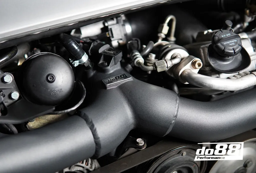 Detta Y-rör är tillverkat i lätt men starkt aluminium och konstruerat för att passa original intercoolers på 996 Turbo. Genom en optimerad invändig design och noggrant utformade flödeskanaler minskar tryckfallet och luftturbulensen, vilket resulterar i snabbare respons och högre effekt. Konstruktionen kombinerar dornbockade aluminiumrör med en exakt gjuten kollektordel som ger ett stabilt och effektivt luftflöde till motorn.