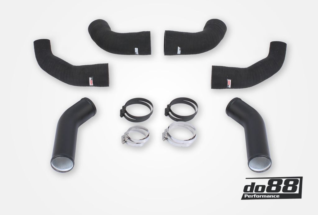 Rören är tillverkade av 63 mm dornbockade aluminiumrör som pulverlackerats i en matt svart strukturfinish. Konstruktionen ger lågt tryckfall och lång livslängd. Medföljande silikonslangar är specialframtagna för höga temperaturer, där slangarna på turbons utlopp har en högtemperaturarmering som tål upp till 240 °C kontinuerligt. Slangklämmorna är av typen “constant tension”, vilket säkerställer tätning även vid temperaturväxlingar.