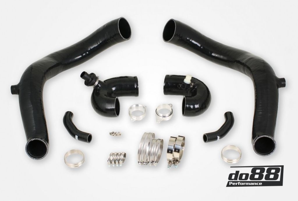 Slangarna har utformats med fokus på maximalt flöde och precision. De är grövre än originalet med en minsta innerdiameter på 2,5" (63 mm) och ger upp till 31 % bättre luftflöde. De mjuka böjarna och den släta insidan säkerställer minimalt motstånd, medan konstruktionen med rostfri stålwire hindrar slangarna från att sugas ihop vid högt laddtryck. Materialets termiska egenskaper förhindrar dessutom värmeöverföring från motorrummet och bibehåller låg insugstemperatur.