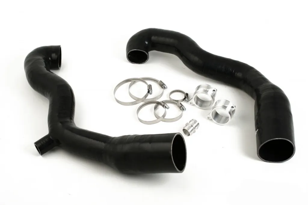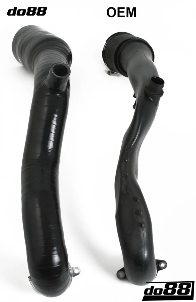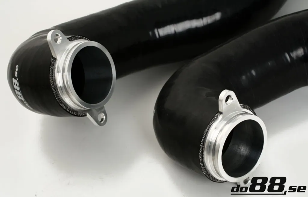 Dessa inloppsslangar har större innerdiameter än original vilket ger markant ökat flöde. Mjuka böjar och släta inre ytor minimerar turbulens och säkerställer optimalt luftflöde till turboladdarna. Slangarna är tillverkade i högkvalitativt silikon med invävd rostfri stålwire som förhindrar hoptryckning vid högt undertryck. Konstruktionen tål extrema temperaturer och ger lång livslängd även under hård belastning. Resultatet är en mer responsiv motor och stabilare laddtryck – utan kompromisser.