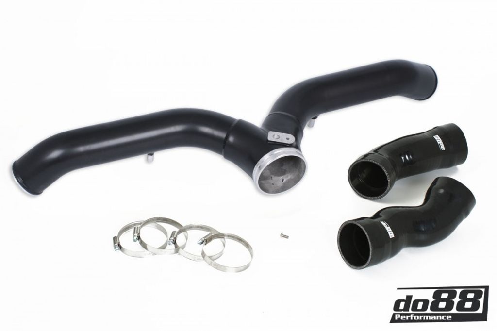Detta Y-rör är konstruerat för att ersätta det restriktiva originalröret och erbjuder hela 62 % bättre luftflöde vid samma tryckfall. Genom att kombinera 70 mm dornbockade aluminiumrör med en högkvalitativ gjuten kollektordel har man uppnått en optimal balans mellan flödeskapacitet, hållfasthet och låg vikt. Rören levereras i en slitstark halvblank svart pulverlack som både skyddar och ger ett professionellt utseende i motorrummet.