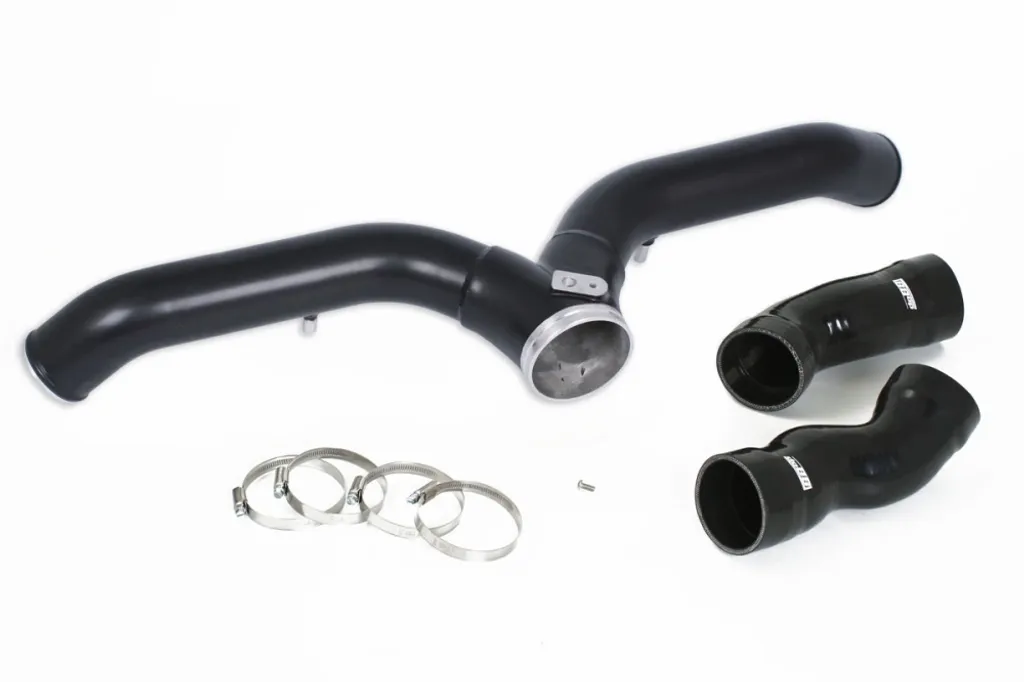 Detta Y-rör är konstruerat för att ersätta det restriktiva originalröret och erbjuder hela 62 % bättre luftflöde vid samma tryckfall. Genom att kombinera 70 mm dornbockade aluminiumrör med en högkvalitativ gjuten kollektordel har man uppnått en optimal balans mellan flödeskapacitet, hållfasthet och låg vikt. Rören levereras i en slitstark halvblank svart pulverlack som både skyddar och ger ett professionellt utseende i motorrummet.
