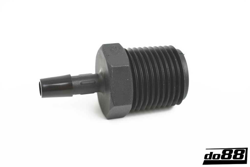 Kopplingen är tillverkad i robust metall och anpassad för slang med innerdiameter 6 mm (1/4''). NPT-gängan (National Pipe Thread) med 14 gängor per tum ger en säker tätning vid korrekt montering med gängtätning. Lämplig för bränsle-, luft-, vakuum- och kylapplikationer inom fordon, industri och motorsport.