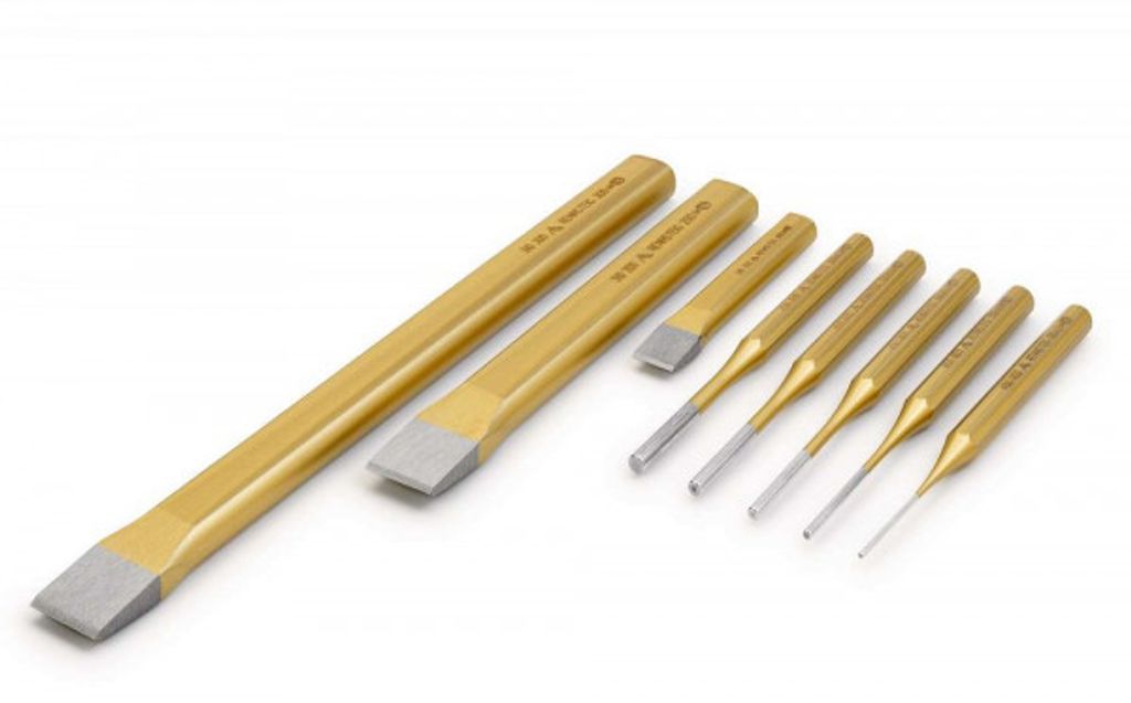 Verktygen är tillverkade i höglegerat, genomgående härdat verktygsstål och utrustade med splittersäkra slaghuvuden som ökar säkerheten vid arbete i stål och metall. Satsen levereras i en exakt anpassad foam-insats som ger optimal ordning och snabb åtkomst.