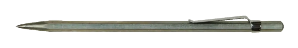 Denna kompakta ritspenna är utformad i penntyp med skyddande lock och metallclip för säker förvaring i bröstficka. Med sin hårdmetallspets (tungsten carbide) ritsar den med hög precision även på härdade ytor, vilket gör den oumbärlig i verkstad, montage och industriella sammanhang.