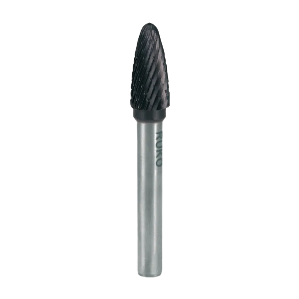 RUKO:s roterande hårdmetallfilar i Form F TiCN har en rundad spets och en extra slitstark TiCN-beläggning som ger hög hårdhet, låg friktion och utmärkt värmetålighet.